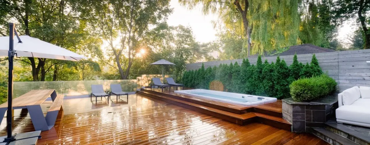 There are lots of options here, from stone and concrete to stylish wood decking. It will not only enable you to make the most of the swim spa but also enjoy the space around it – and create a stylish feature for the garden too.