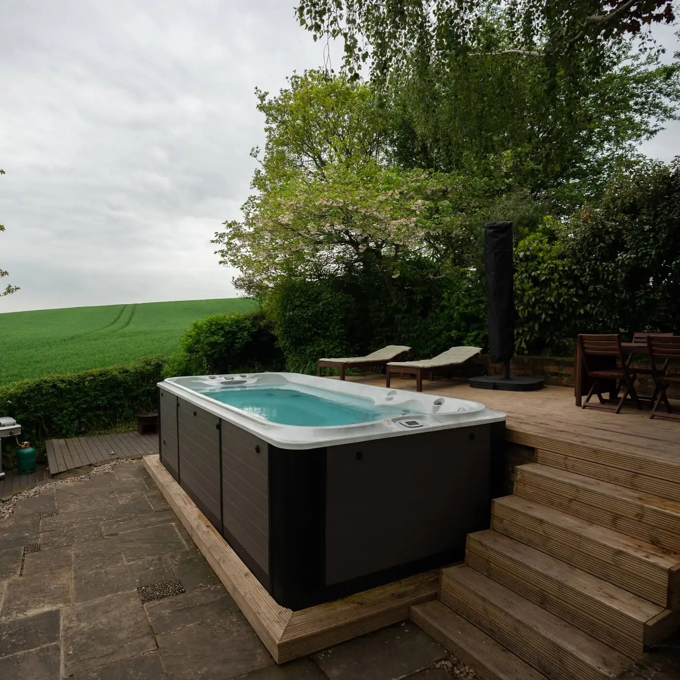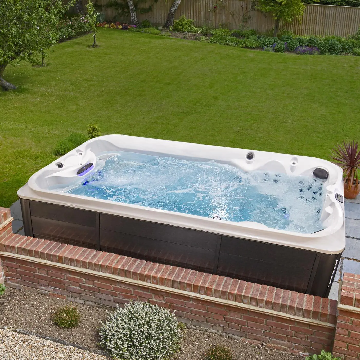 Powered by Jacuzzi® PowerActive™ swim jets, this model creates a smooth, spacious current idea...
