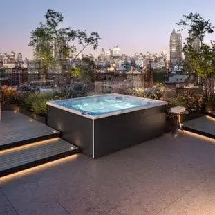 A full-featured modern design, complete with a sleek exterior and infinity-edge waterfall, creates a striking visual centrepiece in any setting. For effortless control, the SmartTub® app lets you monitor and manage your spa from anywhere using your smart device.